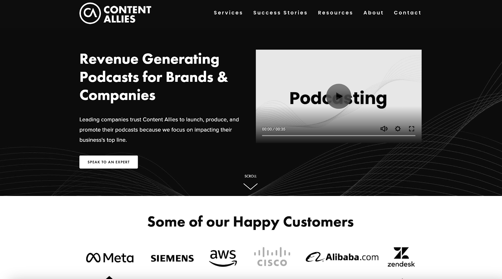 The podcast production agency has worked with impressive names such as Meta (previously Facebook), Alibaba, Siemens Energy, and more.