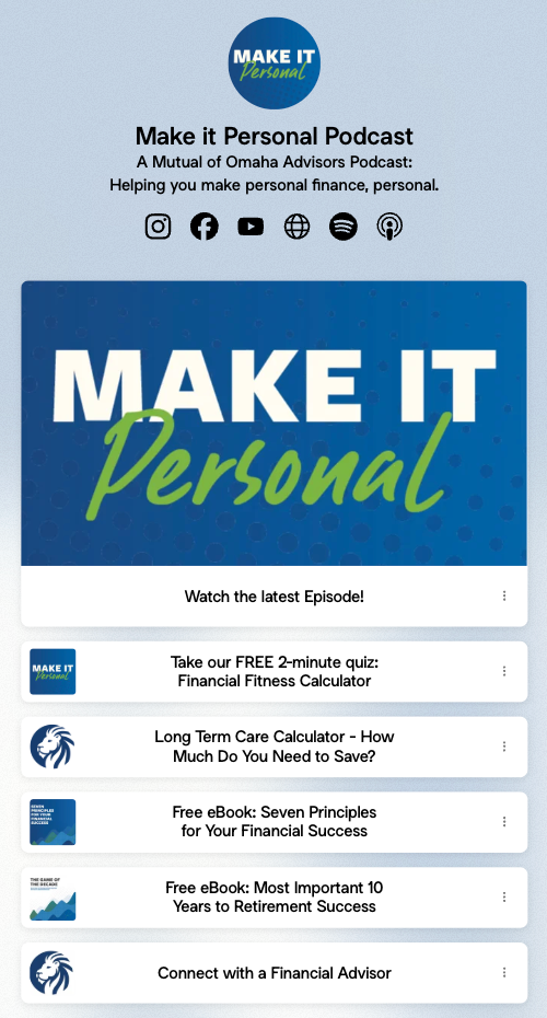 Make It Personal is a weekly podcast by Mutual of Omaha designed to help you cut through the noise and focus on what really matters: taking control of your finances and building the future you want.